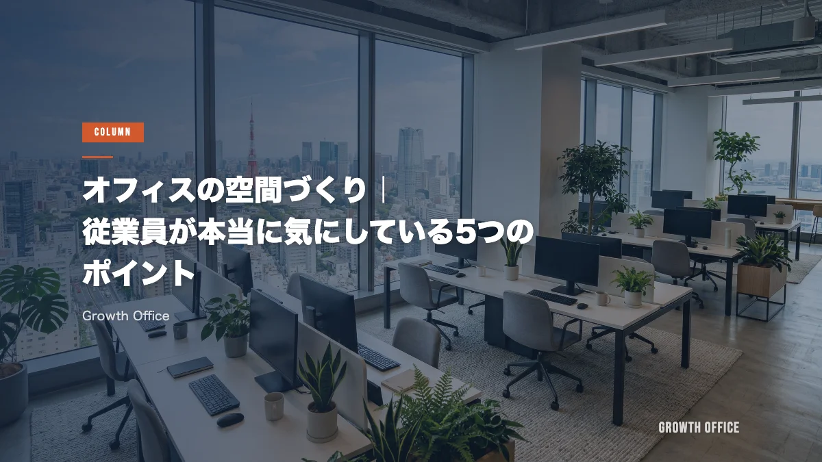 オフィスの空間づくりで従業員が最も重視しているのは、おしゃれなデザインではなく温度・照明・電源・収納・パーソナルスペースの5つの基本要素です。これらが整っていないオフィスでは、どれだけ見た目にこだわっ...