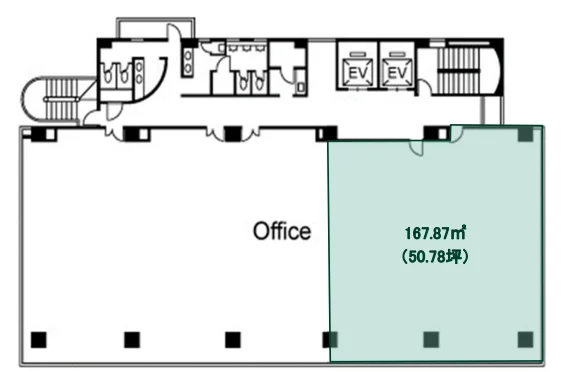 | 詳細を見る | 8階 | 内装事務所仕様 | 50.78坪 (167.87㎡) | 賃料¥660,140 (坪13,000円) | 共益費相談 | 敷金相談 | 入居可能日相談 |