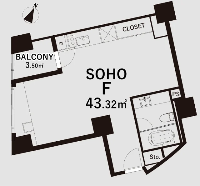 | 面積(坪) | 13.10坪 | 面積(㎡) | 43.31㎡ |
