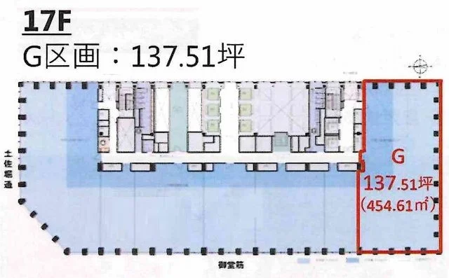 | 詳細を見る | 17階 | 引き渡し状態事務所仕様 | 137.51坪 (454.58㎡) | 賃料要問合せ | 共益費相談 | 敷金12ヶ月 | 入居可能日相談 | |