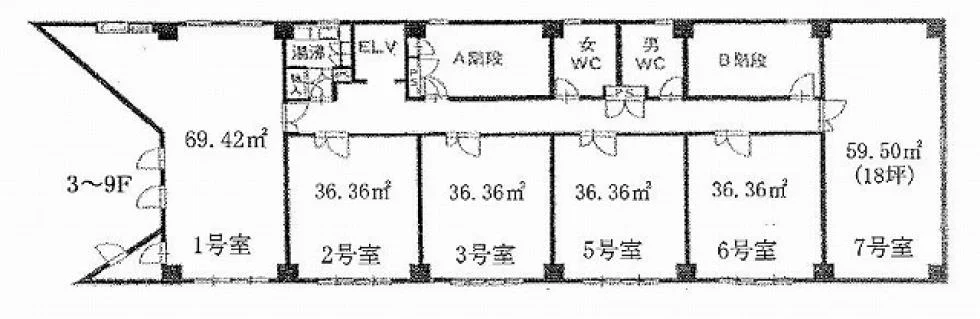 | 面積(坪) | 18.00坪 | 面積(㎡) | 59.50㎡ |